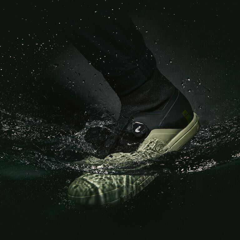Wet feet and soggy socks on a ride are a drag. The Fox Union All Weather Flat Shoes boast a high collar of the shoes which ensures dirt, debris, and moisture stays out while you shred. The Ultratac™ outsole gives you elite grip, while the D3O® insole provides added protection and vibration reduction. The BOA® Fit System allows for easy micro-adjustability for on-the-fly fit adjustments, while the tuned midsole of these MTB winter shoes provide additional performance, comfort, and power to every pedal stroke.